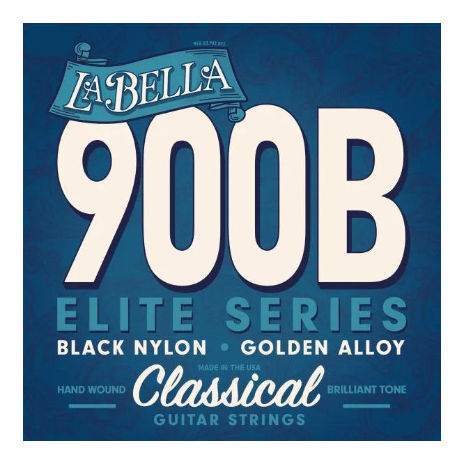 La Bella 900-B Elite Nylon Guitar Strings – Black Nylon - Polished Golden Alloy