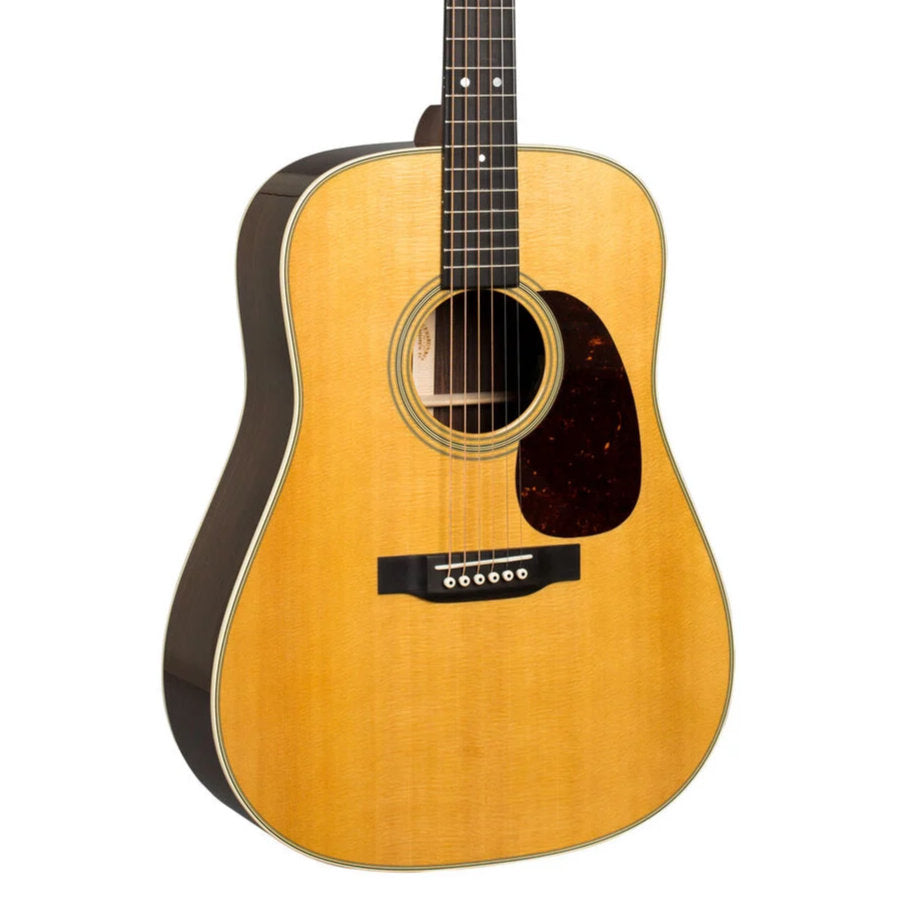 The Martin D-28 is widely regarded as the most iconic acoustic guitar in the world, trusted by generations of players and played by countless legends across genres. Its Dreadnought body size and scalloped bracing delivers the bold, projective tone with strong bass, clear trebles, and rich overtones that has defined acoustic music for nearly a century. Handcrafted with a solid spruce top and solid East Indian rosewood back and sides, the D-28 produces a resonant voice that’s beautifully balanced for all playing styles. The satin neck, featuring a Golden Era (GE) Modified Low Oval profile, high-performance taper, and 25.4" scale length, ensures smooth, effortless playability. With antique white binding, an ebony fingerboard with mother of pearl dot inlays, an ebony bridge with bone pins, and nickel open gear tuners, the D-28 blends timeless craftsmanship with modern playability. Available in a variety of gloss and satin options, the D-28 is the guitar you can trust to unleash the artist within.