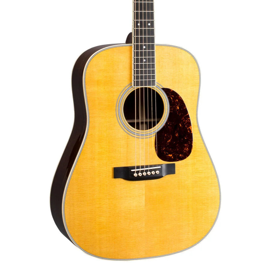The Martin D-35 is a unique and trusted classic, first introduced in the mid-1960s and played by countless music legends ever since. Its Dreadnought body size delivers a bold, projective sound with strong bass, clear trebles, and rich overtones, making it a versatile choice for players of all styles. Handcrafted with a solid spruce top and solid East Indian rosewood back and sides, the D-35 stands out with its iconic three-piece back and lighter, non-scalloped 1/4" bracing, offering a balanced yet powerful tone. The satin neck, featuring a Golden Era (GE) Modified Low Oval profile, high-performance taper, and 25.4" scale length, ensures smooth, effortless playability. Complete with antique white binding, a bound ebony fingerboard with mother of pearl dot inlays, an ebony bridge with bone pins, and chrome enclosed gear tuners, the D-35 is built to carry on its legacy in your hands. Available in a variety of striking gloss options, it’s a guitar you can trust to unleash the artist within.