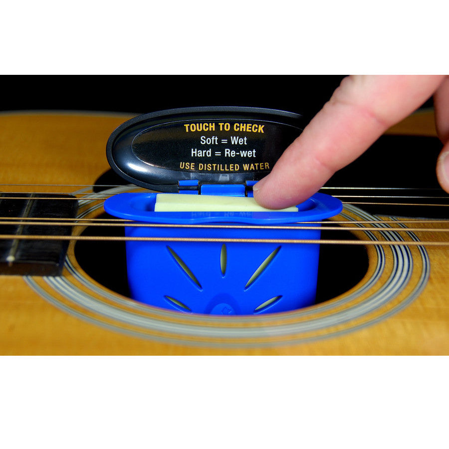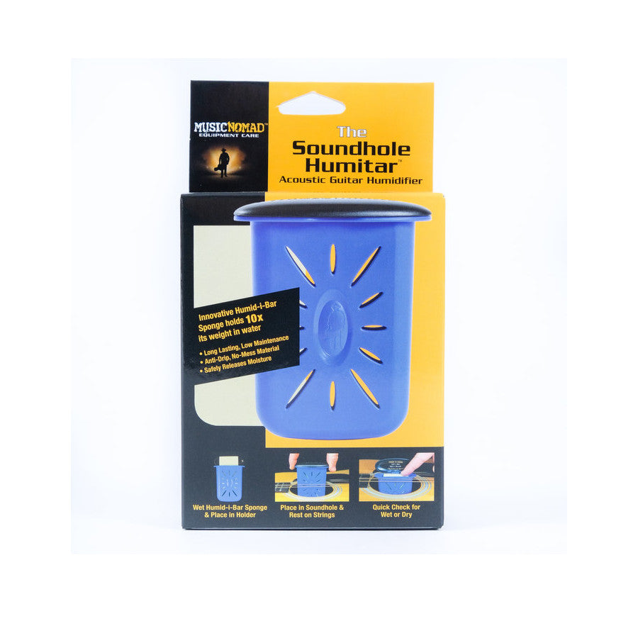Acoustic guitar wood needs moisture to play and look its best. A dry guitar can warp, shrink and worse yet, crack! MusicNomad, the leader in equipment care products, has developed an easy to use, no mess, and low maintenance guitar humidifier. The Humitar safely releases moisture evenly to eliminate these potential problems. MusicNomad's innovative Humid-i-Bar sponge holds a lot more water than their competition. This means less monitoring on your end while resting assured your fine guitar is being cared for. Time to check the Humitar? Easy! Pop the top, touch the insert; if it’s wet leave it, if it’s dry, it’s time to rehydrate. Rehydrating is a cinch – simply remove the Humid-i-Bar sponge, soak it in distilled water and you’re back in action – easy no mess and low maintenance.