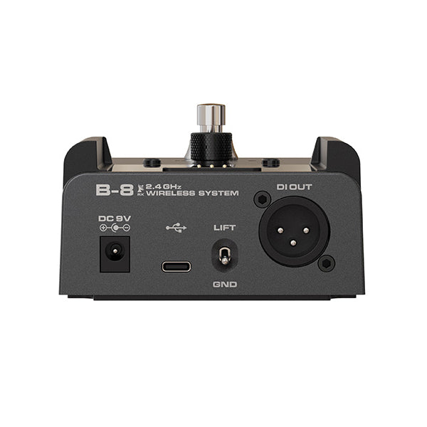With the latest transmitting technologies, the B-8 wireless system has the best performance for musicians. The operation range is up to 50 meters (160-feet). And, the latency is as low as 2.5ms when you set the transmitting at LOW LATENCY.