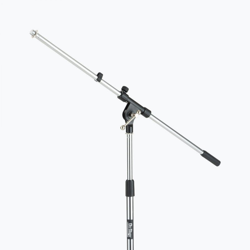 Ideal for the touring professional, On-Stage height-adjustable MS7701C Euro Boom Mic Stand delivers exceptional stability in any setting, even on irregular surfaces. The removable boom arm adjusts in angle for precise mic placement, making it a versatile choice that excels in a variety of applications ranging from miking vocals to acoustic instruments to amps. The entire stand conveniently folds flat to facilitate storage and travel.