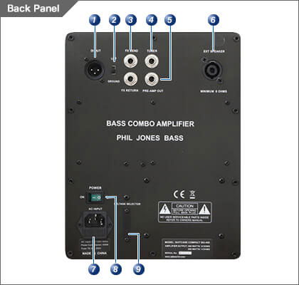 Jacks - 2 x Input(1/4”Phone), Headphone Out, D.I. Out(GND Lift SW), FX Send/Return, Tuner Out, Preamp Out, Ext. Speaker Out(8Ω/Speakon), AC-Input