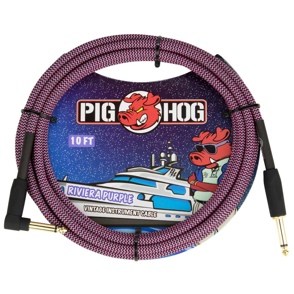 Pig Hog PCH10RPPR Vintage Woven Straight to Right Angle Instrument Cable - Riviera Purple - 10 ft.