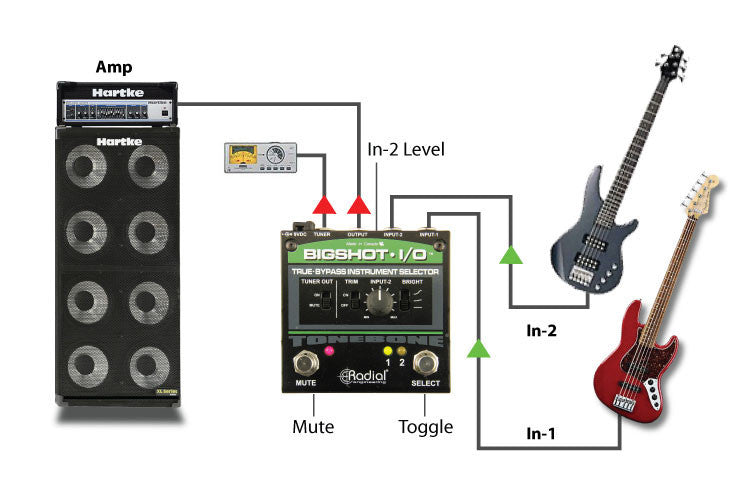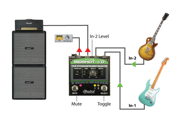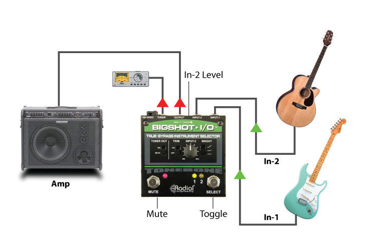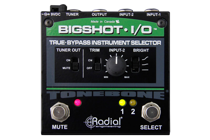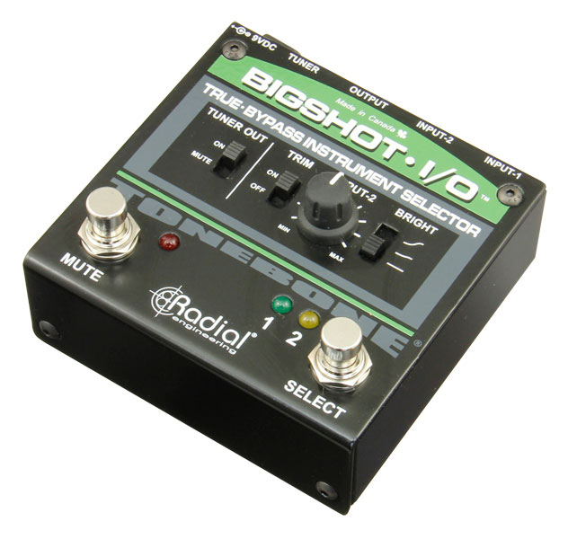 The Radial BigShot i/o is an easy to use instrument selector that lets you quickly transition between any two instruments and send the output signal to your amp. Because the i/o is 100% true-bypass, it addresses the needs of the most demanding purist.