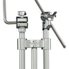 - Telescopic boom arm with geared tilter for precise cymbal positioning