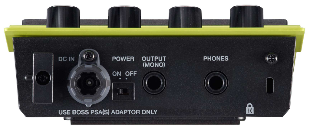 - Main output (mono) and headphones output (stereo) for monitoring