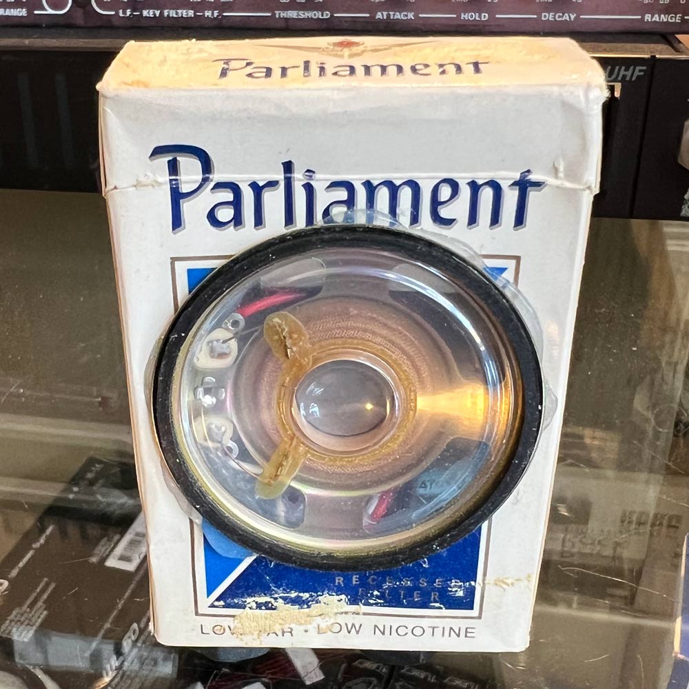 This is a 1990s 9V Battery Powered Micro Guitar Amp by Bruce Zinky of Smokey Amps built into a Parliament Cigarette Pack.