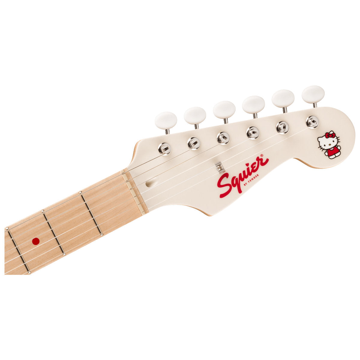 Featuring Hello Kitty graphics, the headstock matches the body color for a cohesive look.