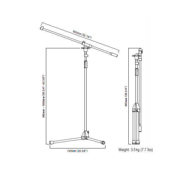 The Iron Works Tour Series MS455BK boom stand with tripod legs boasts clever innovations that surpass the status quo in terms of value, performance and usability. Applicable in a wide range of mic-ing situations—the MS455BK provides consistent, reliable results every time.