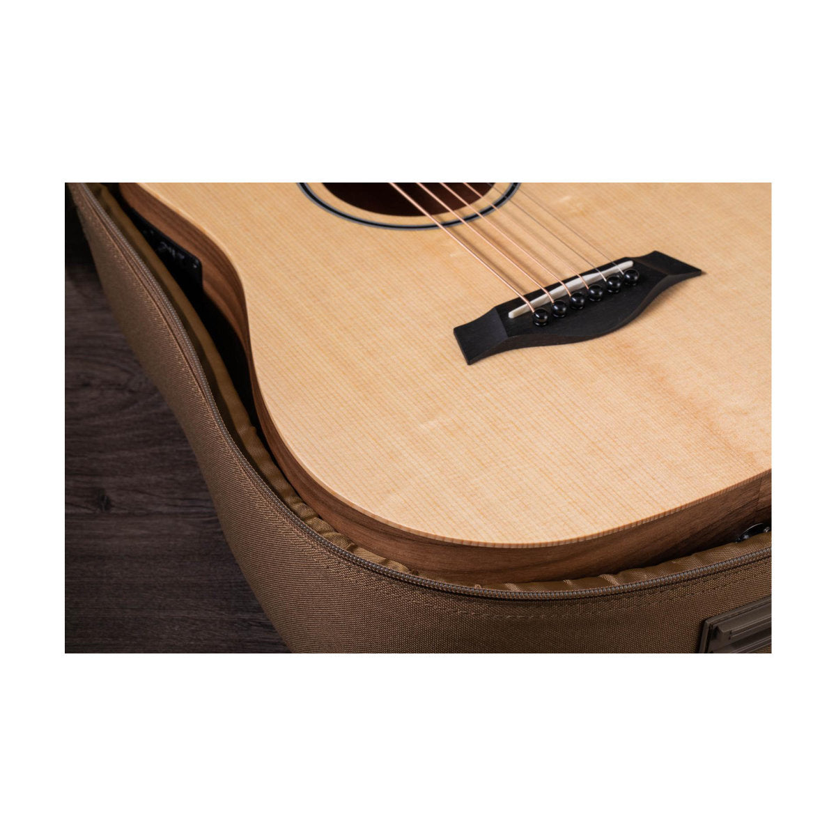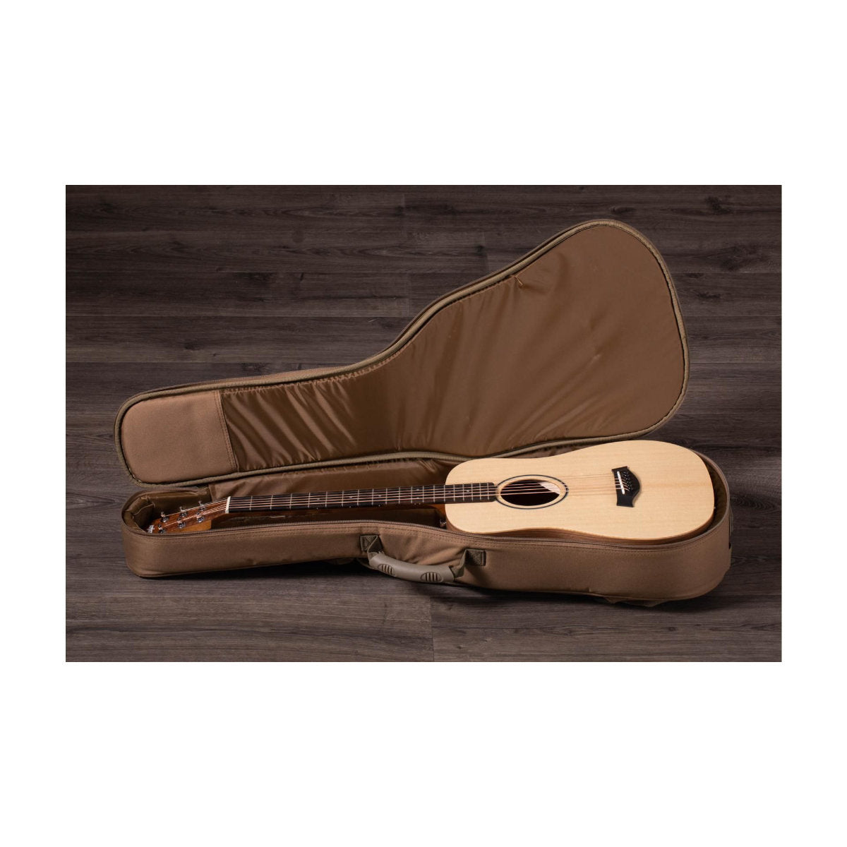 A ¾-scale Dreadnought, the Baby Taylor is designed to yield a ton of volume for its small size. A layered sapele back is pressed into a slight arch, providing strength and helping produce the Baby’s full, rich tone. It’s also remarkably versatile for special applications, whether played in alternate tunings or high-strung; with a capo or a slide. And it’s the perfect travel companion or starter guitar for young kids.