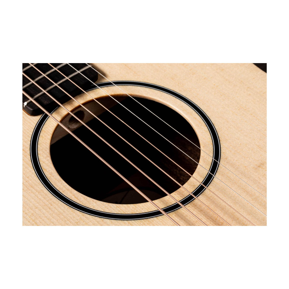 - Solid spruce top yields impressive volume and tone