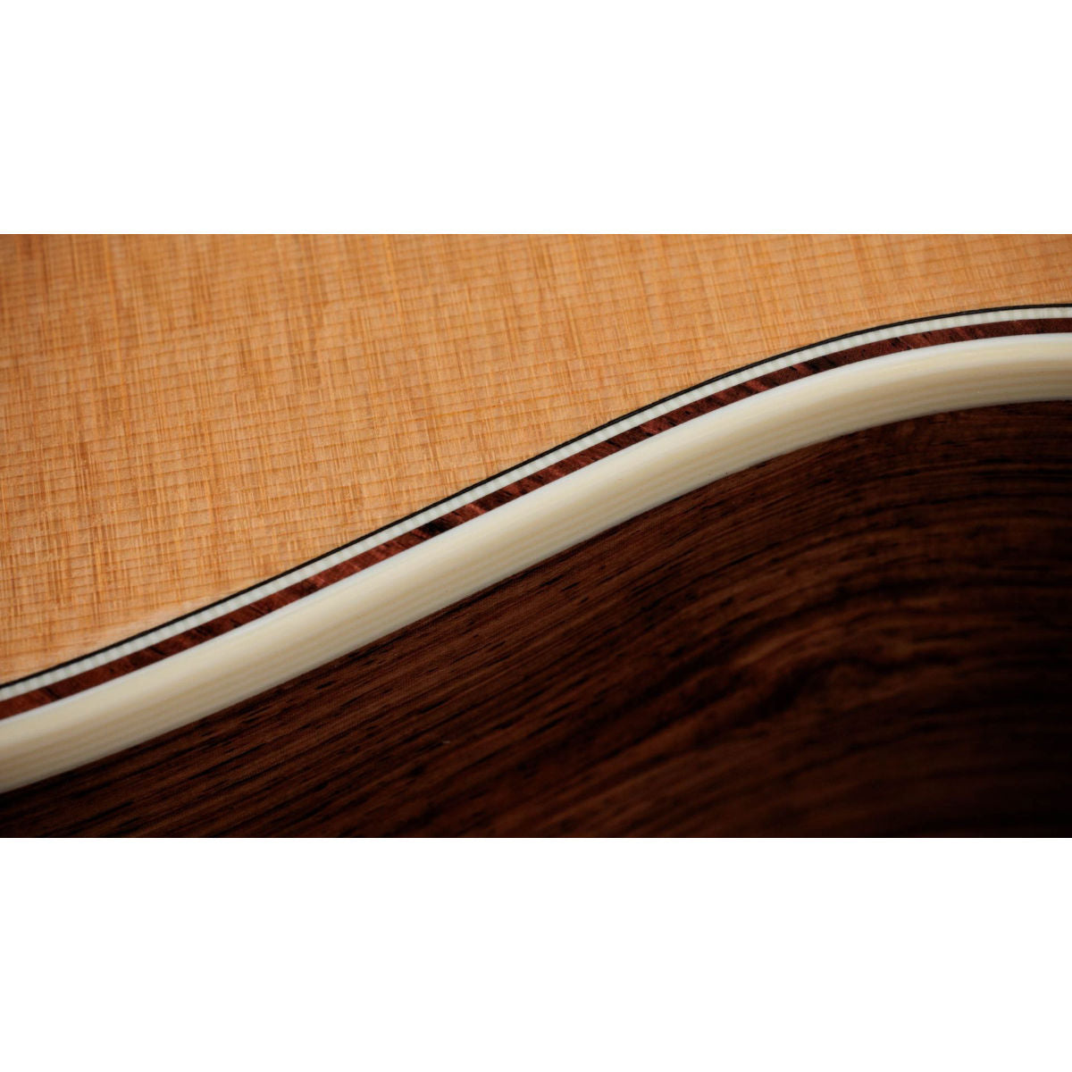 Super Auditorium Body: Building on the versatility, balance and clarity that players have come to love from Bob Taylor’s Grand Auditorium body shape, consider the Super Auditorium an evolution of that playing experience that incorporates all the benefits of the V-Class bracing architecture developed by Andy Powers. With curves and contours that draw on Bob’s design but with a slightly longer body and wider lower bout, the Super Auditorium will feel familiar while adding a new sonic dimension inspired by guitars from the 1930s and ’40s. With a focus on warmth, the Super Auditorium produces an open, blooming voice that produces room-filling tone with a light touch while gaining power as you dig in. Inside, a fanned V-Class variant enhances the depth and resonance, enhancing the volume and sustain while ensuring pitch accuracy all the way up the neck.