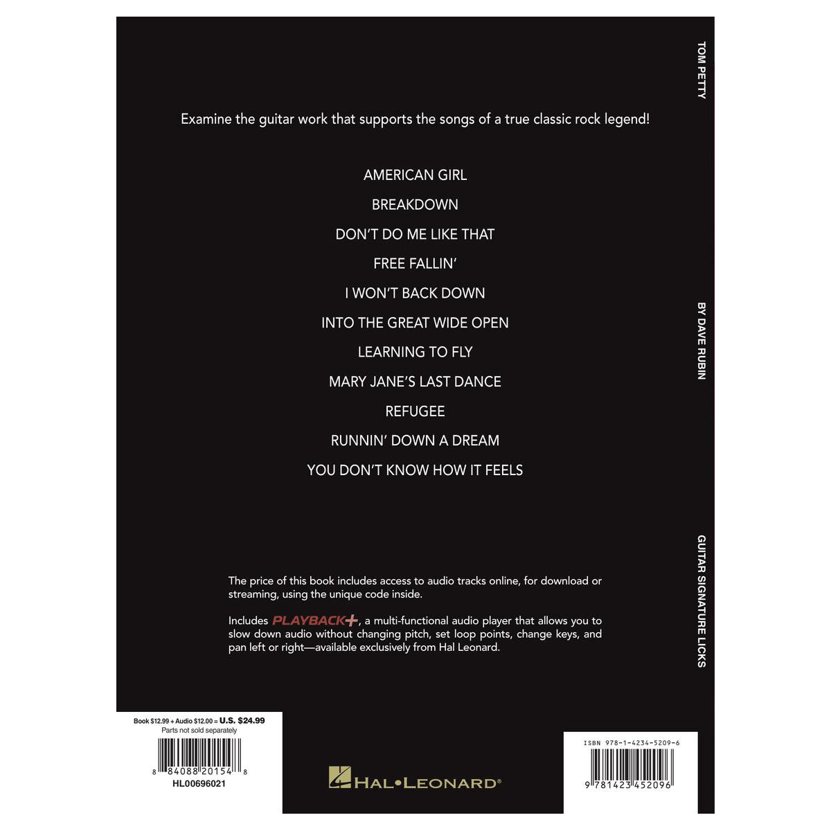 Examine the masterful axe work that supports the songs of this classic rock legend! Dave Rubin provides detailed analysis of Tom & Mike's on: American Girl • Breakdown • Don't Do Me like That • Free Fallin' • I Won't Back Down • Into the Great Wide Open • Learning to Fly • Mary Jane's Last Dance • Refugee • Runnin' Down a Dream • You Don't Know How It Feels.