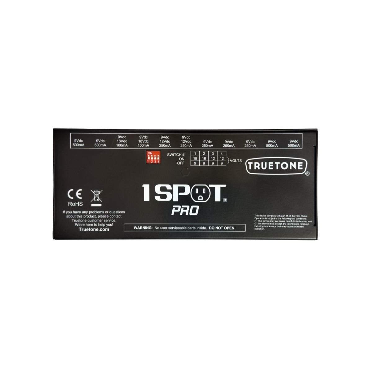 1 SPOT Technology… what does that mean and why should I care? Technically, it’s switching power supply technology, which is very different than what anyone has ever put inside a power brick. Normally, you would find just a big transformer and a handful of small electronic components inside a power brick… old tech that hasn’t changed in decades and has a lot of limitations. Truetone took the same triple filtered switching power supply technology found in Truetone's famous 1 SPOT and scaled it up to make the 1 SPOT Pro models. With much more space to work with, Truetone was able to completely eliminate noise, provide total electrical isolation between outputs, create multiple voltages, and still give you the ability to use it anywhere in the world.