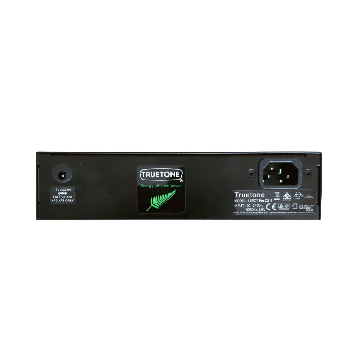 Prior to the 1 SPOT, musicians either used one linear power supply (a.k.a. wall wart) per pedal, or used batteries. Both solutions for powering pedals were very inefficient with energy, with batteries also contributing greatly to the toxic waste stream. In 2000, Truetone pioneered the use of switching power supply technology to alleviate this condition in an economically-, energy- and environmentally-conservative way. The 1 SPOT power supply was designed to replace many such external power supplies and/or batteries simultaneously. It provided plenty of power with a very low noise level to successfully meet the needs of musicians. By offering musicians a solution that was more cost effective and energy efficient, and moving the market away from linear transformer-based power supplies to switching power supplies, Truetone has caused the saving of thousands of watt-hours per musician per year. Utilizing a more comprehensive switching power supply solution, the 1 SPOT Pro sets a new level of efficiency for power bricks, while still meeting the needs of musicians for low noise operation, even in severe conditions where the pedals themselves may generate interfering noise.