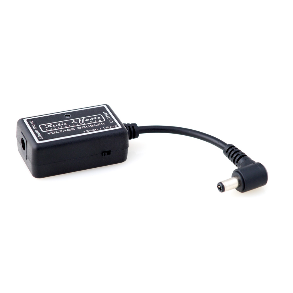 The Xotic “Voltage Double” is a step-up converter that takes 9 volts DC and boosts it to an output voltage of 15 or 18 VDC (max current draw 80mA). Simple - Higher voltage levels result in more headroom. When you boost the voltage your find your Xotic pedals will get much more dynamic, more headroom, top end and brightness, less compressed sound. Boosting the Bass BB Preamp and Bass RC Booster sound great with bass guitar with the extra headroom and clarity.