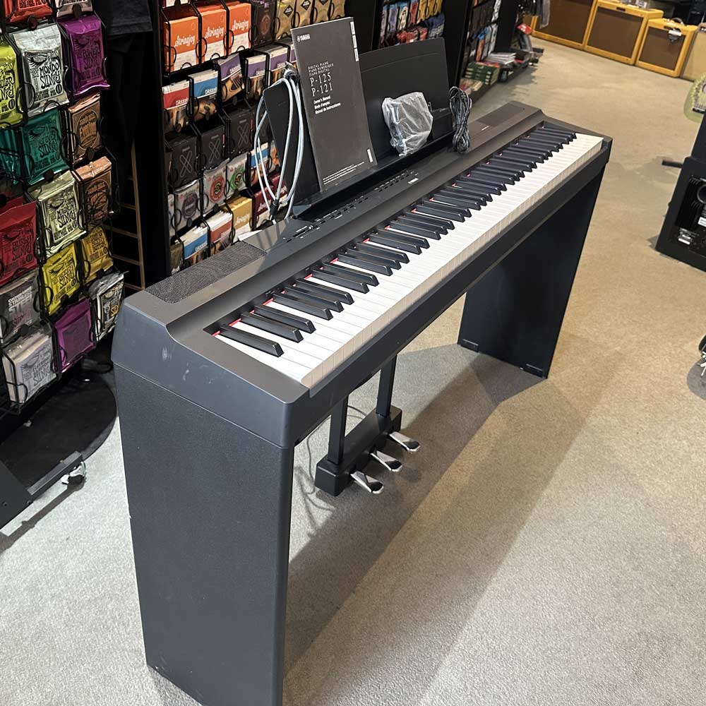 The Yamaha P-125 is a compact digital piano that combines incredible piano performance with a user-friendly minimalistic design. Easily portable and extremely accessible, the P-125 is always ready to perform whenever or wherever you are.